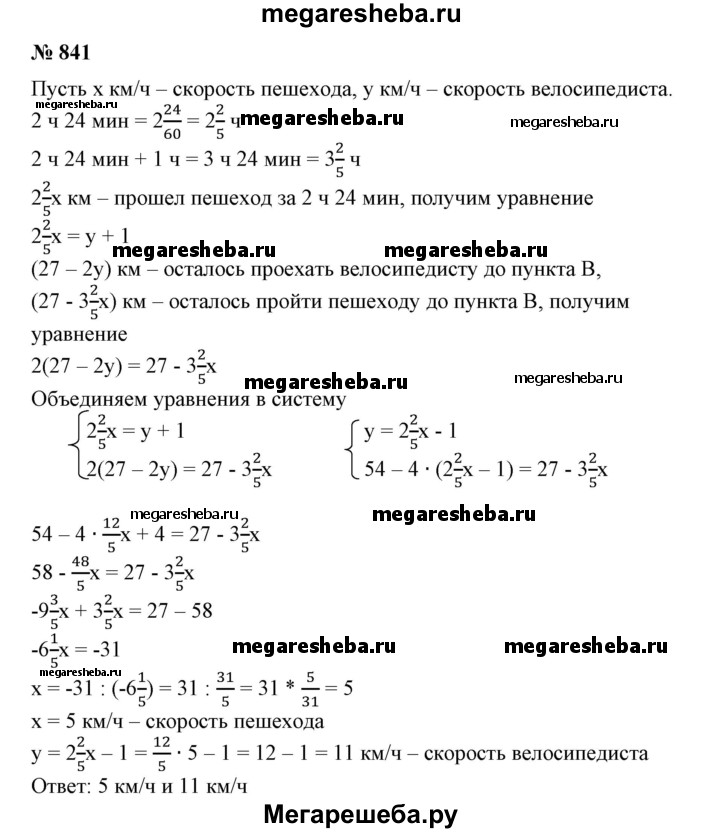 Подробный решебник (ГДЗ) по Алгебре за 7 (седьмой) класс - готовый ответ номер - 841. Авторы учебника: Алимов, Колягин, Сидоров. Издательство: Просвещение 2015.