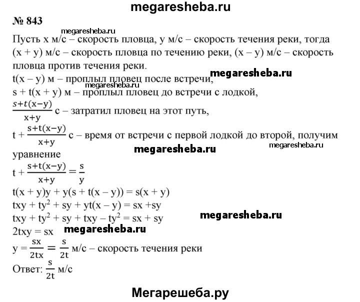 Подробный решебник (ГДЗ) по Алгебре за 7 (седьмой) класс - готовый ответ номер - 843. Авторы учебника: Алимов, Колягин, Сидоров. Издательство: Просвещение 2015.
