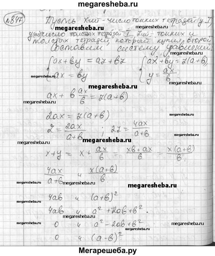 Подробный решебник (ГДЗ) по Алгебре за 7 (седьмой) класс - готовый ответ номер - 847. Авторы учебника: Алимов, Колягин, Сидоров. Издательство: Просвещение 2015.