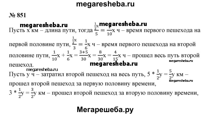 Подробный решебник (ГДЗ) по Алгебре за 7 (седьмой) класс - готовый ответ номер - 851. Авторы учебника: Алимов, Колягин, Сидоров. Издательство: Просвещение 2015.