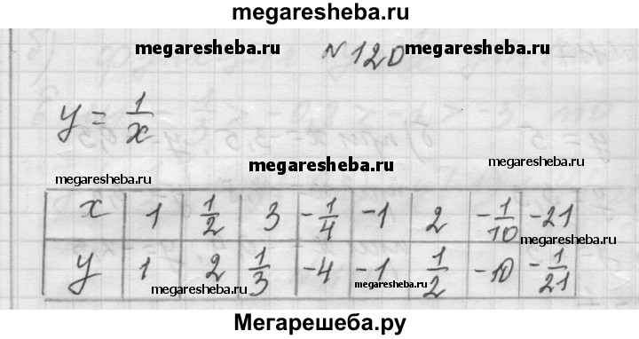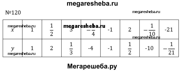 120. Заполните таблицу так, чтобы пары чисел х и у задавали точки графика функции у = 1/x.