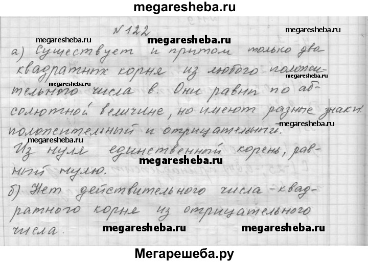 122. а) Сколько существует квадратных корней из положительного числа? из нуля? б) Существуют ли действительные числа — квадратные корни из отрицательных чисел?