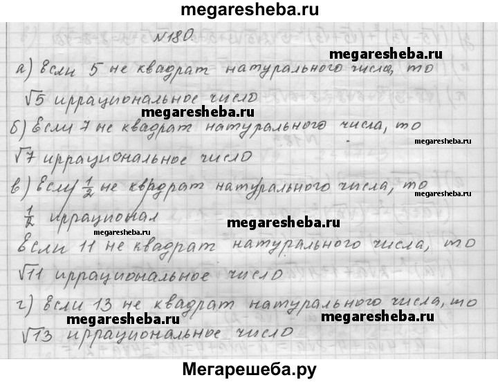 180. Докажите, что число: a) √5; б) √7; в) √11; г) √13 иррациональное.
