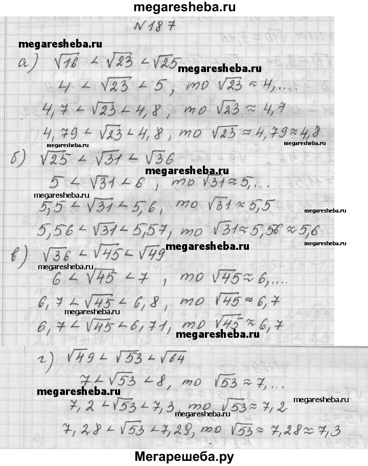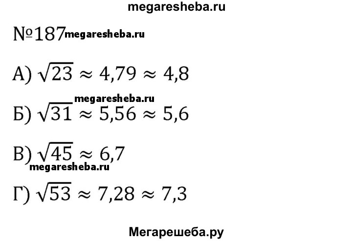 187. Вычислите с точностью до 0,1: а) √23; б) √31; в) √45; г) √53.