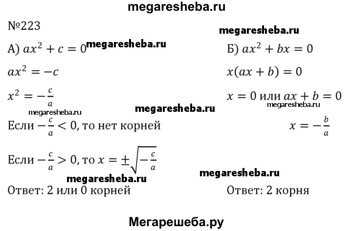 223. Сколько корней может иметь неполное квадратное уравнение: