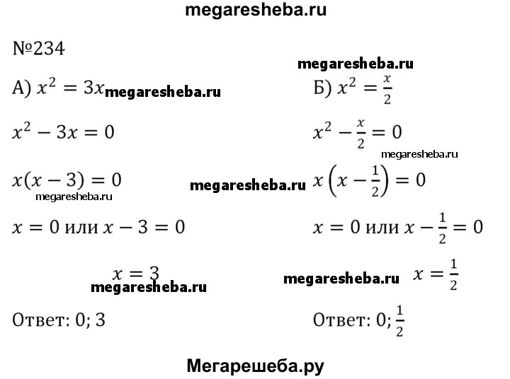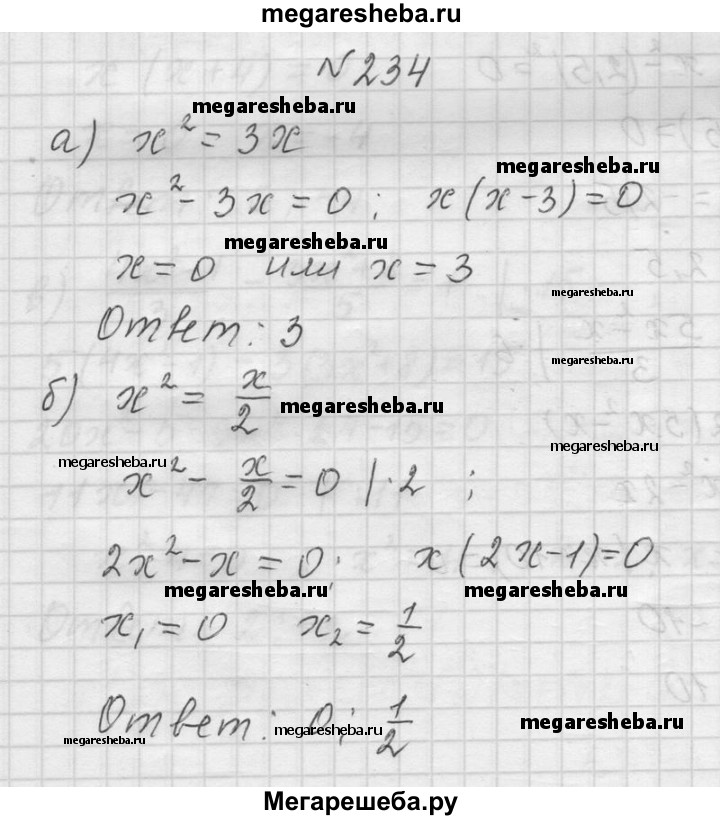 234. а) Квадрат натурального числа равен утроенному этому же числу. Найдите такое число. б) Квадрат числа в 2 раза меньше самого числа. Найдите это число.