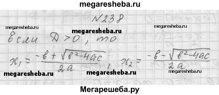 238. По какой формуле можно найти корни квадратного уравнения, если его дискриминант неотрицателен?
