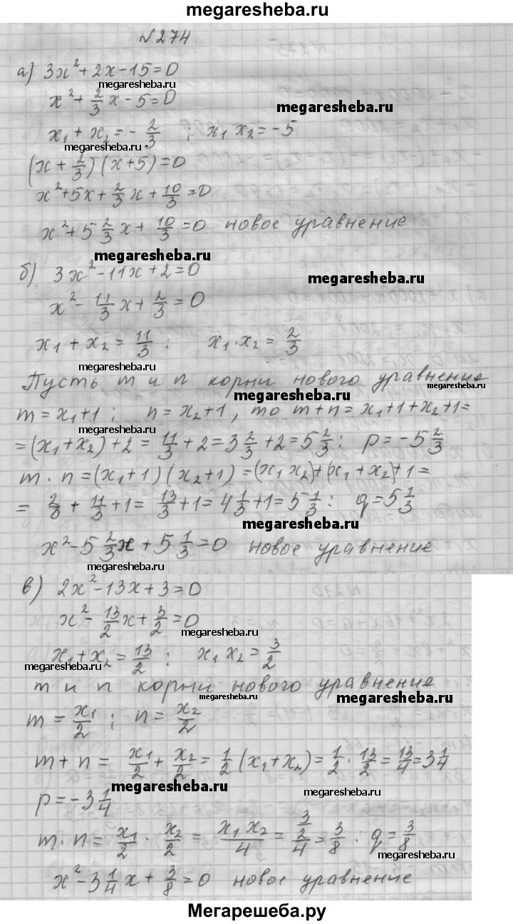 Подробный решебник (ГДЗ) по Алгебре за 8 (восьмой) класс - готовый ответ номер - 274. Авторы учебника: Никольский, Потапов, Решетников, Шевкин. Издательство: Просвещение 2015-2022.
