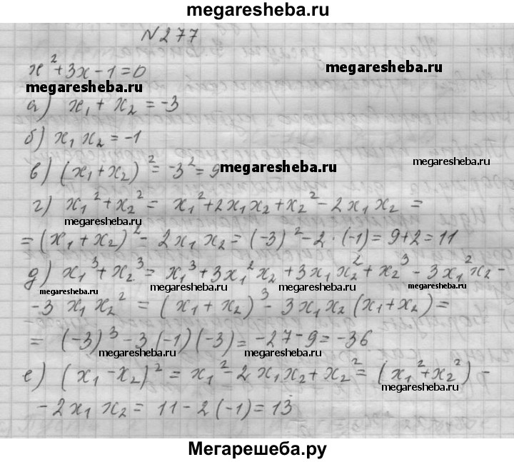 277. Уравнение x2 + Зx - 1 = 0 имеет два корня х1 и х2 Вычислите: