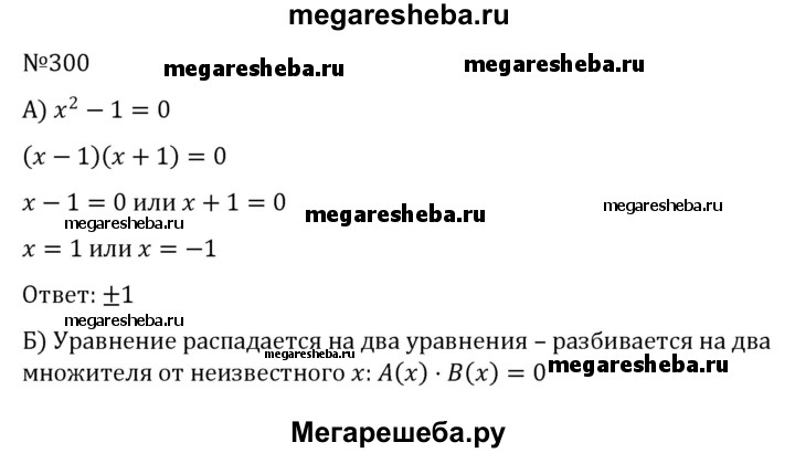 300. а) Приведите пример распадающегося уравнения и объясните, как его решить. б) Что значит «уравнение распадается на два уравнения»?
