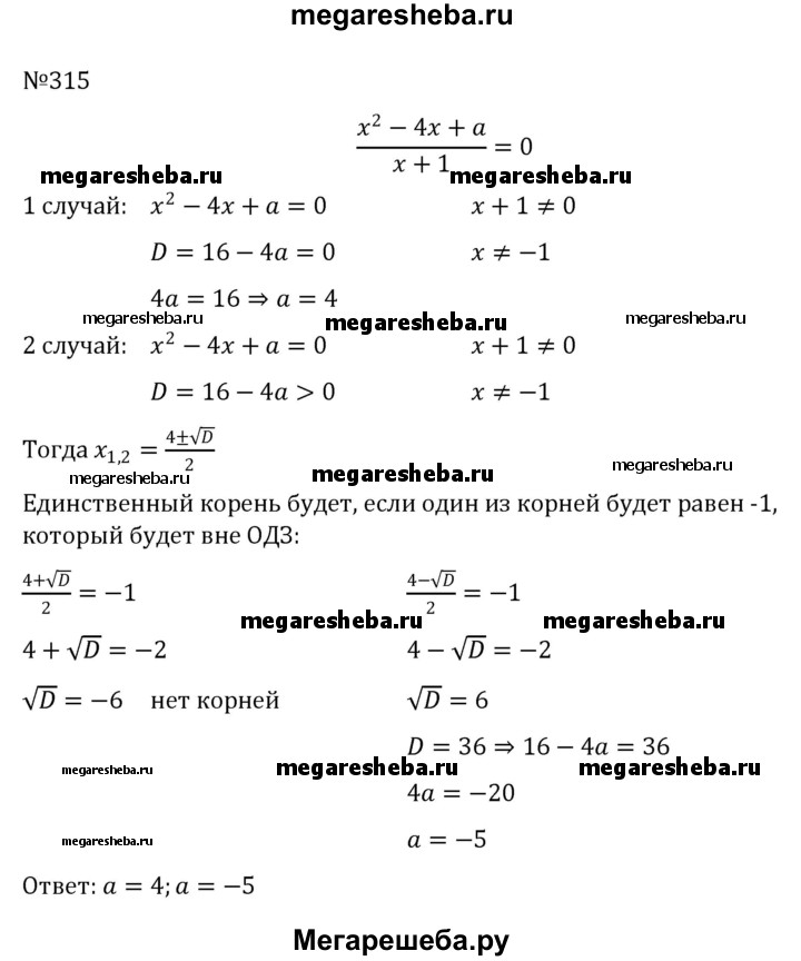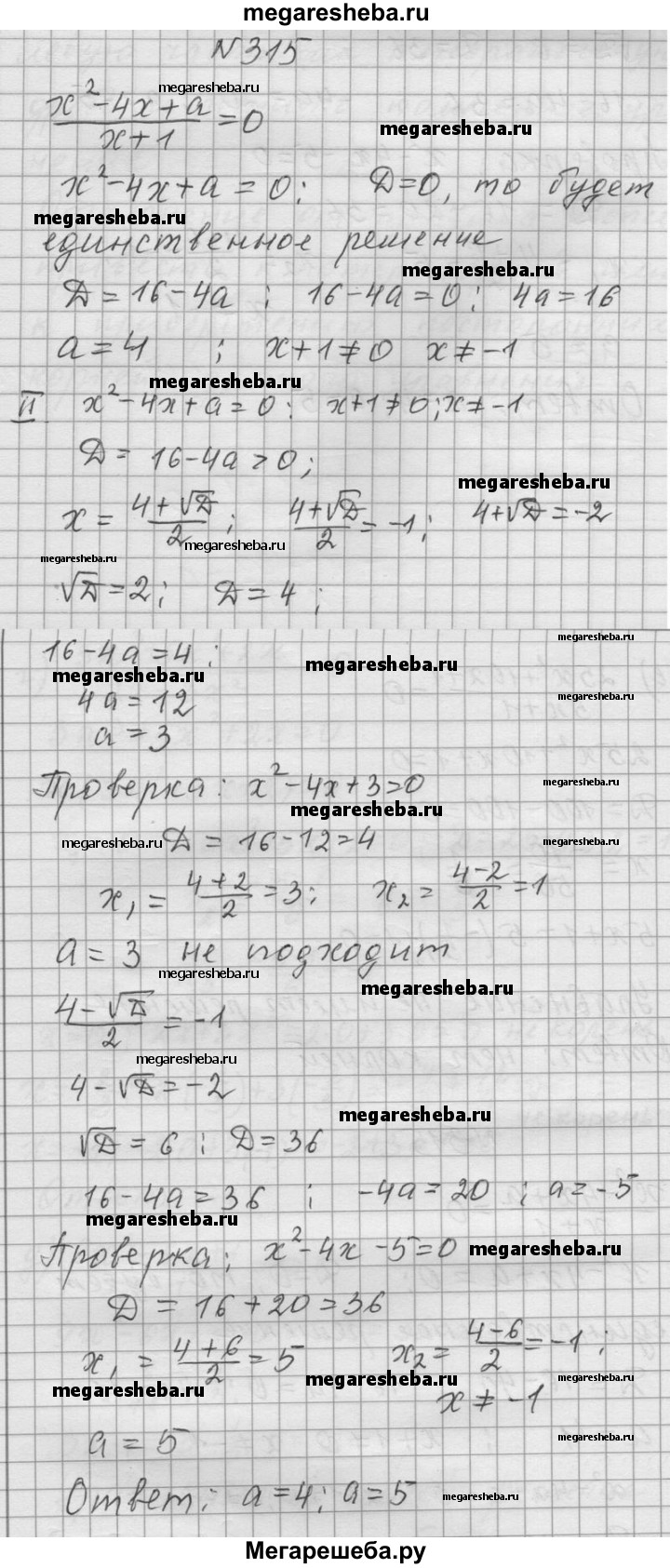 Подробный решебник (ГДЗ) по Алгебре за 8 (восьмой) класс - готовый ответ номер - 315. Авторы учебника: Никольский, Потапов, Решетников, Шевкин. Издательство: Просвещение 2015-2022.