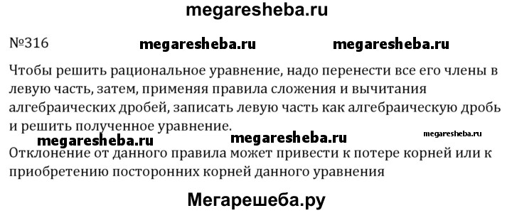 316. По какому правилу решают рациональные уравнения? Что может произойти при отклонении от этого правила?