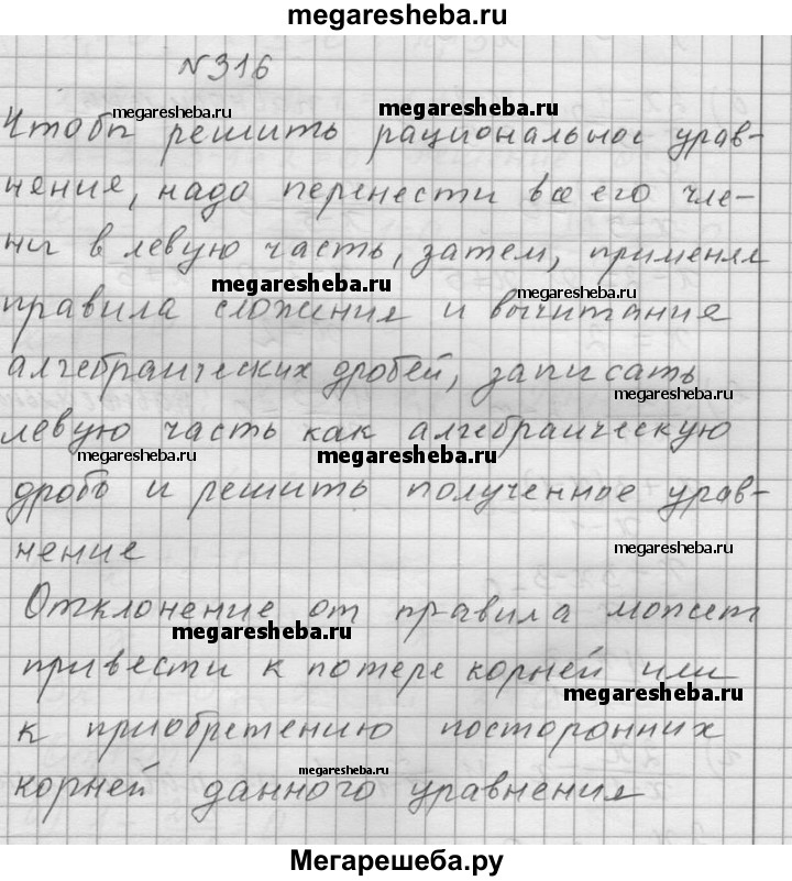 Подробный решебник (ГДЗ) по Алгебре за 8 (восьмой) класс - готовый ответ номер - 316. Авторы учебника: Никольский, Потапов, Решетников, Шевкин. Издательство: Просвещение 2015-2022.