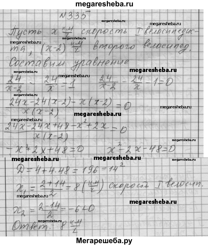Подробный решебник (ГДЗ) по Алгебре за 8 (восьмой) класс - готовый ответ номер - 335. Авторы учебника: Никольский, Потапов, Решетников, Шевкин. Издательство: Просвещение 2015-2022.
