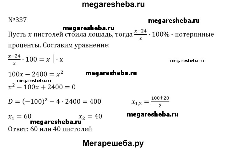 Подробный решебник (ГДЗ) по Алгебре за 8 (восьмой) класс - готовый ответ номер - 337. Авторы учебника: Никольский, Потапов, Решетников, Шевкин. Издательство: Просвещение 2015-2022.