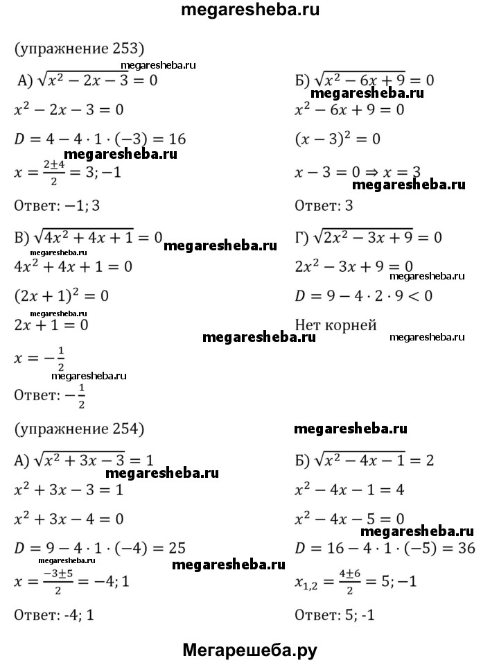 Решите уравнения из заданий 252—254 (см. с. 85) переходом к уравнению-следствию.