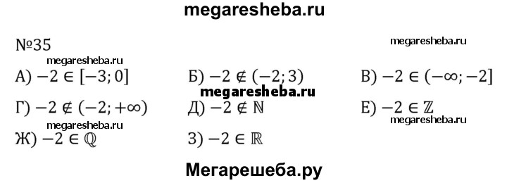 35. Принадлежит ли число -2 множеству чисел (сделайте запись с помощью знаков ∈ и ∉):