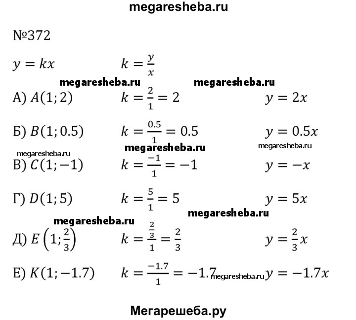 372. Какой формулой задана прямая, проходящая через начало координат и точку:
