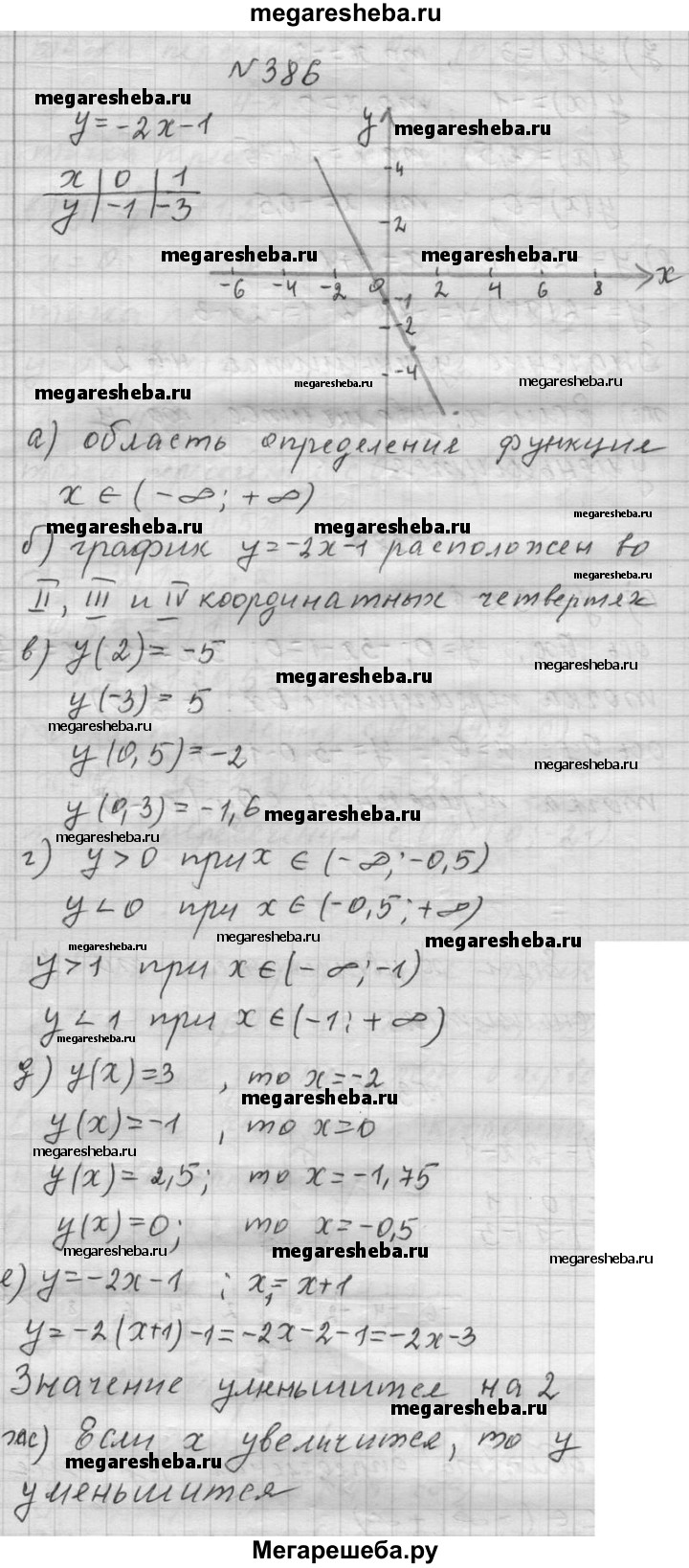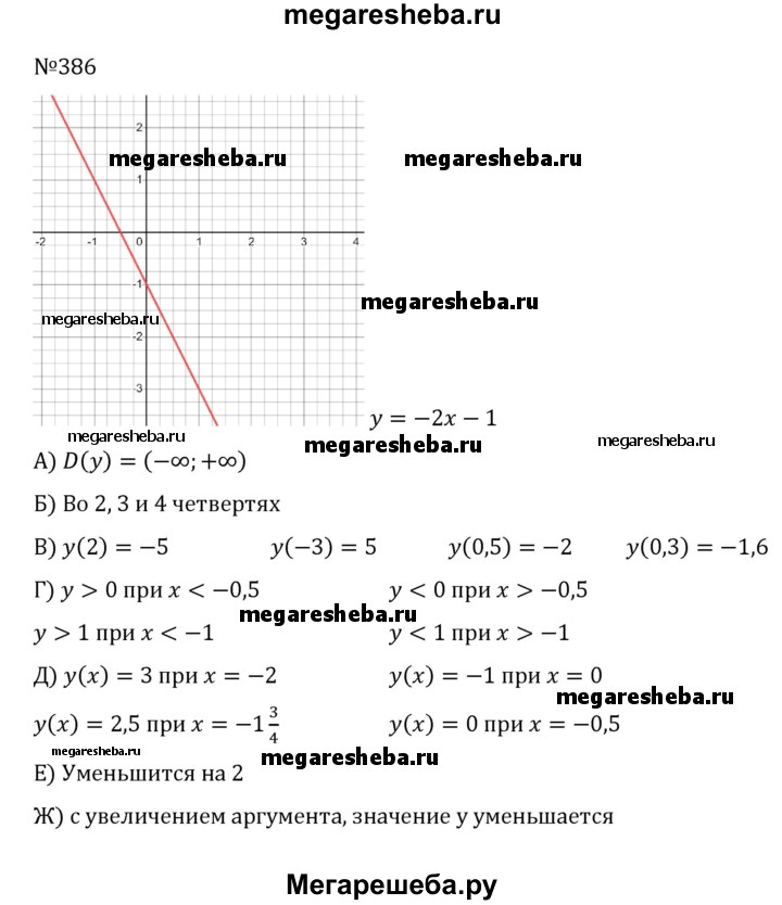 386. Постройте график функции у =-2х - 1. Ответьте на вопросы предыдущего задания.
