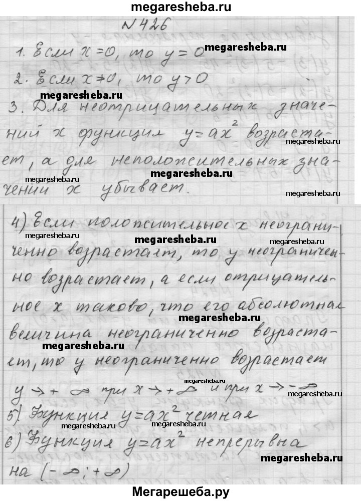 426. Какими свойствами обладает функция у = ах2 (а > 0)?
