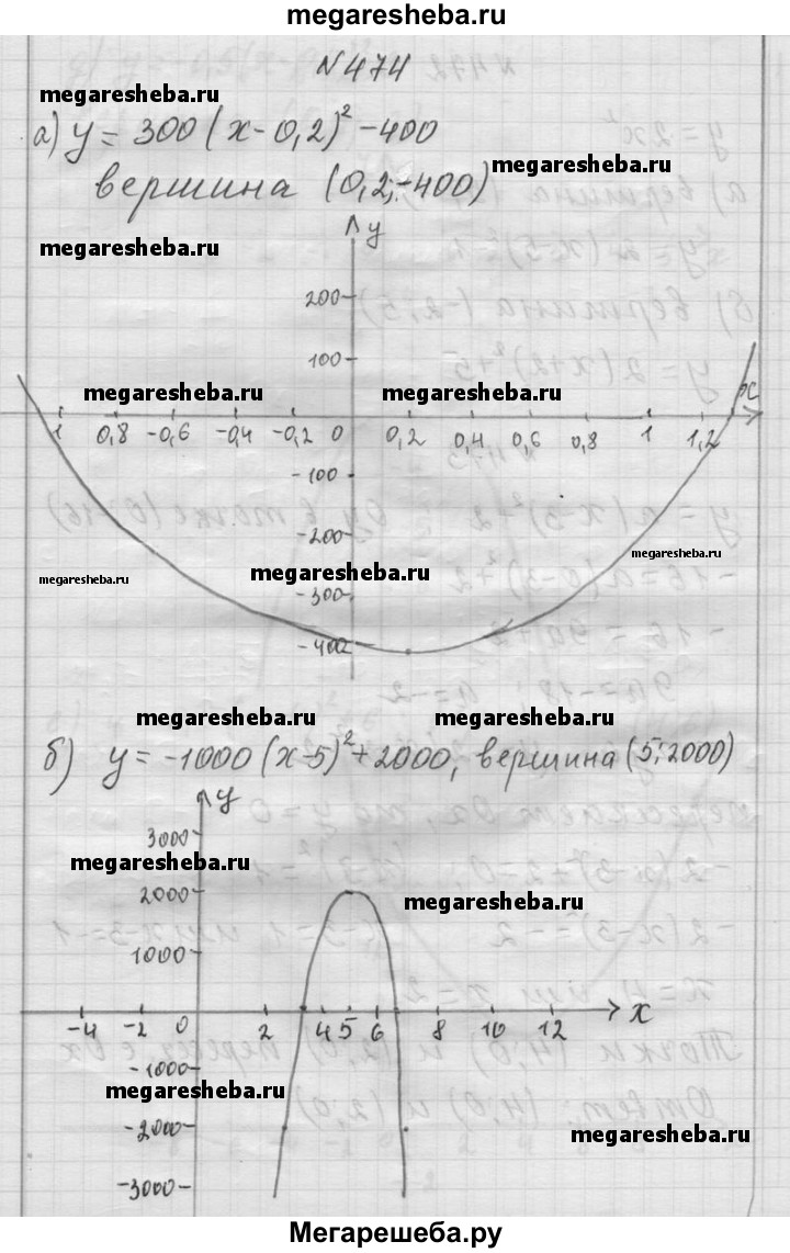 474. Выбрав удобный масштаб, постройте график функции: а) у = 300 (х - 0,2)2 - 400; б) у = -1000(х - 5)2 + 2000.