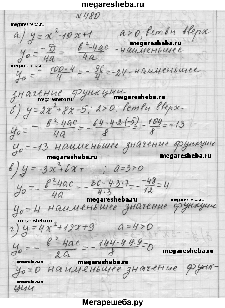 Подробный решебник (ГДЗ) по Алгебре за 8 (восьмой) класс - готовый ответ номер - 480. Авторы учебника: Никольский, Потапов, Решетников, Шевкин. Издательство: Просвещение 2015-2022.