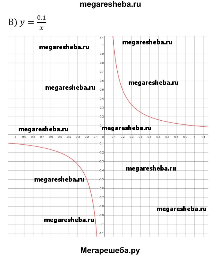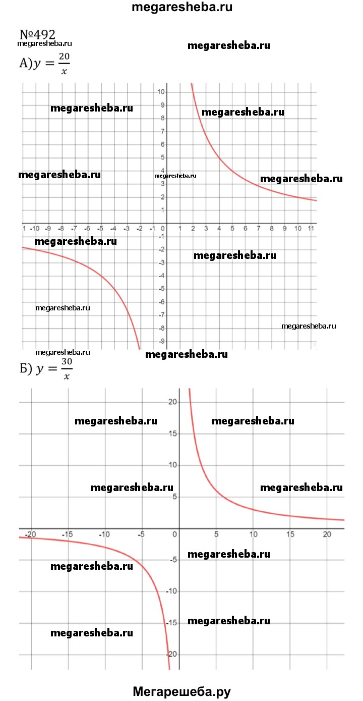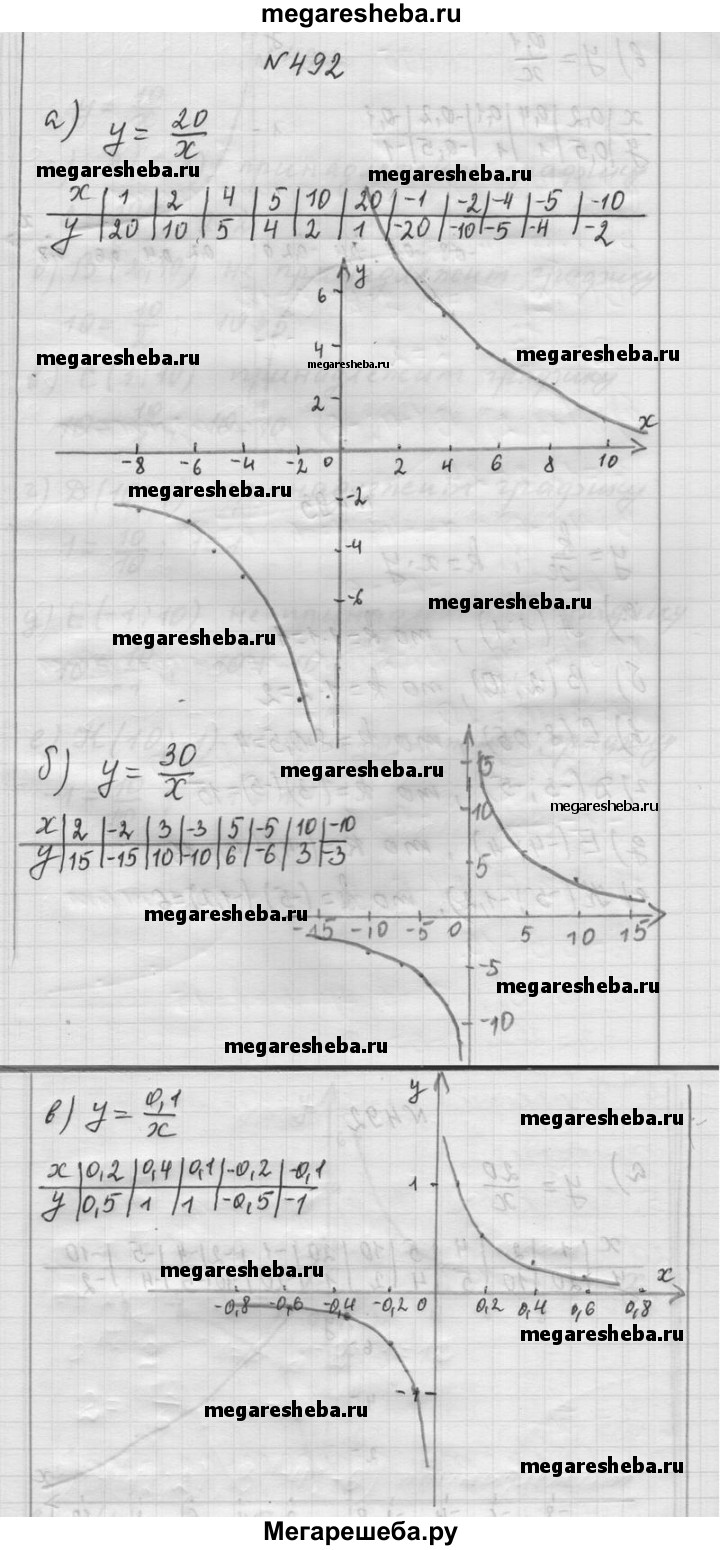 492. Постройте график функции: а) y = 20/x б) y = 30/x в) y = 0,1/x Указание. Выберите удобные для построения единичные отрезки.