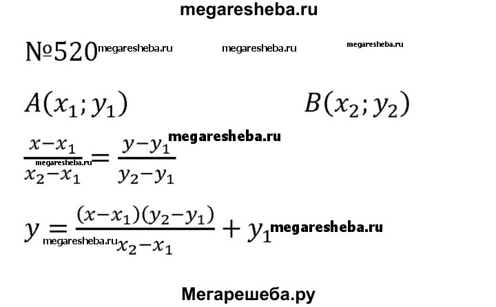 520. Исследуем. Напишите уравнение прямой, проходящей через две различные точки А(х1; y1) и В(х2; у2).