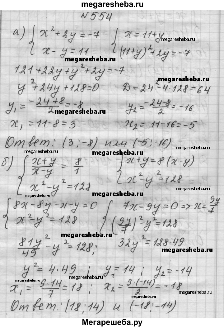 Подробный решебник (ГДЗ) по Алгебре за 8 (восьмой) класс - готовый ответ номер - 554. Авторы учебника: Никольский, Потапов, Решетников, Шевкин. Издательство: Просвещение 2015-2022.