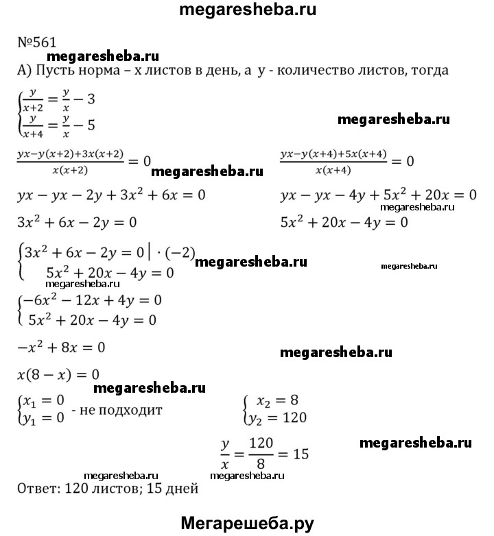 Подробный решебник (ГДЗ) по Алгебре за 8 (восьмой) класс - готовый ответ номер - 561. Авторы учебника: Никольский, Потапов, Решетников, Шевкин. Издательство: Просвещение 2015-2022.
