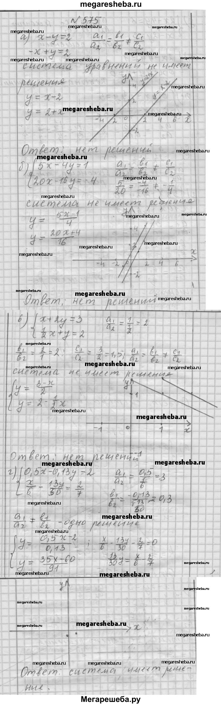 575. Имеет ли решение система уравнений: Проиллюстрируйте ответ с помощью графиков.