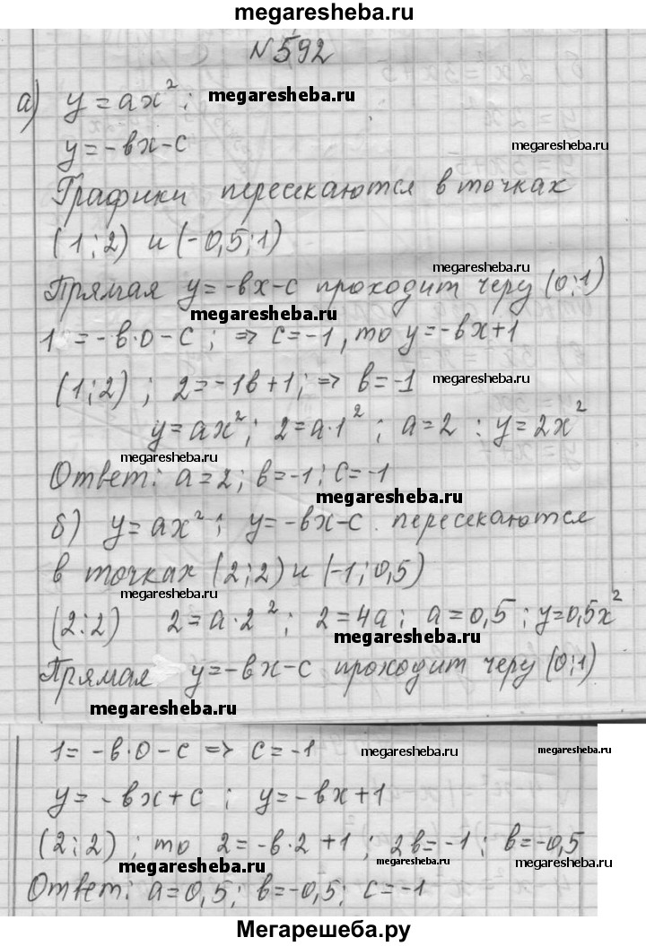 592. Используя графики функций (рис. 111), решите уравнение ах2 = -bх - с и определите а, b и с.