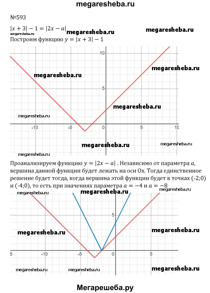 593. Найдите все значения а, такие, что уравнение |х + 3 |- 1 = |2х-а| имеет единственное решение.