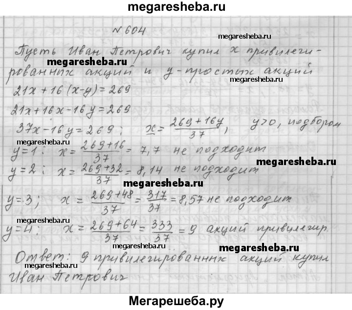 Подробный решебник (ГДЗ) по Алгебре за 8 (восьмой) класс - готовый ответ номер - 604. Авторы учебника: Никольский, Потапов, Решетников, Шевкин. Издательство: Просвещение 2015-2022.