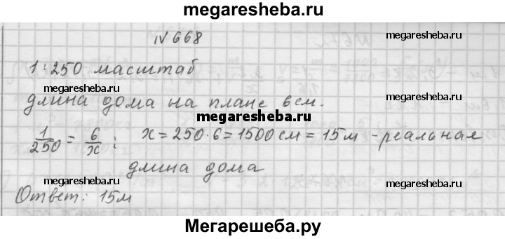 668. Длина дома на плане, масштаб которого 1 : 250, равна 6 см. Найдите реальную длину дома.