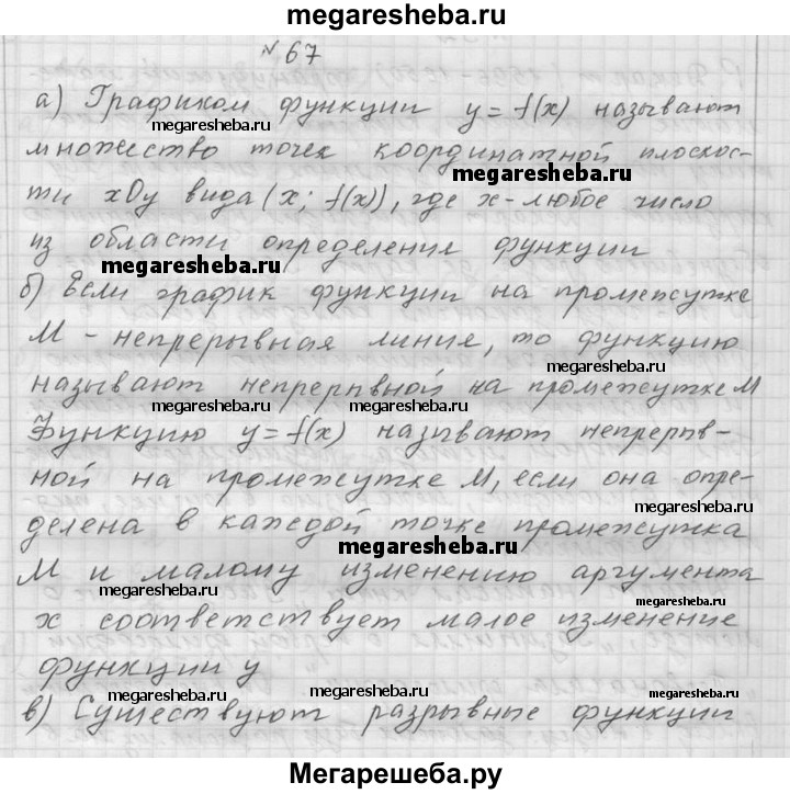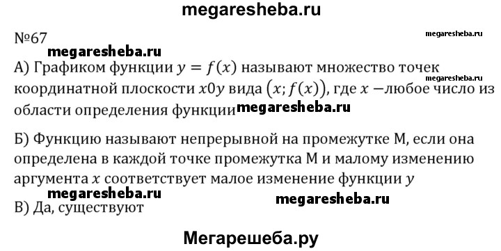67. а) Что называют графиком функции? б) Какую функцию называют непрерывной на промежутке М? в) Существуют ли разрывные функции?