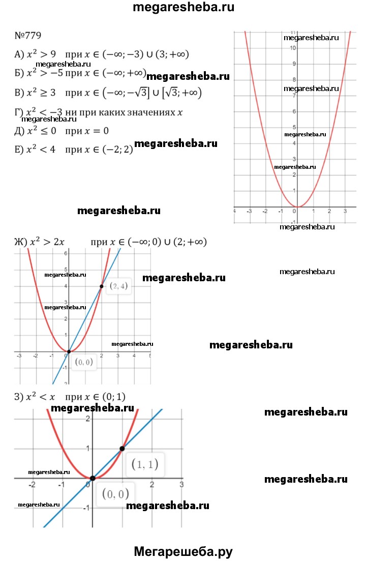 779. Определите с помощью графика значения х, для которых выполняется неравенство:
