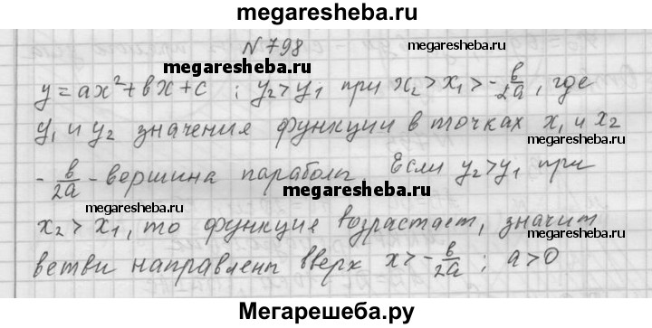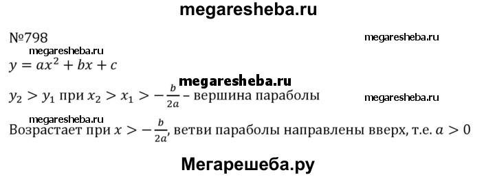 798. Определите знак числа а в формуле квадратичной функции у = ах2 + bх + с, если у2 > ух при х2 > х1 > - b/2a , где у1 и у2 — значения функции в точках х1 и х2.