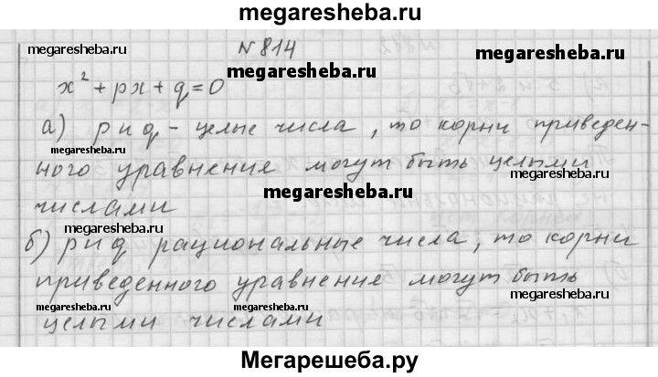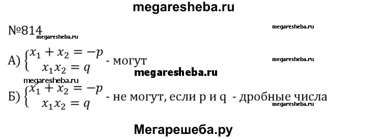 814. Могут ли быть целыми числами корни приведённого квадратного уравнения х2 + рх + q = 0, если р и q: а) целые числа; б) рациональные числа?