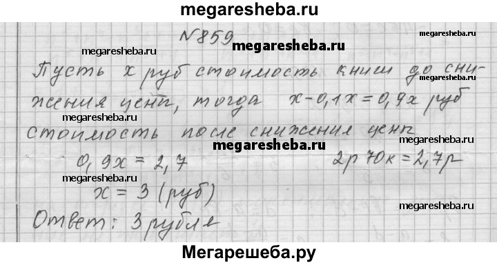 859. Книга продана со скидкой 10 % за 2 р. 70 к. Сколько стоила эта книга до снижения цены?