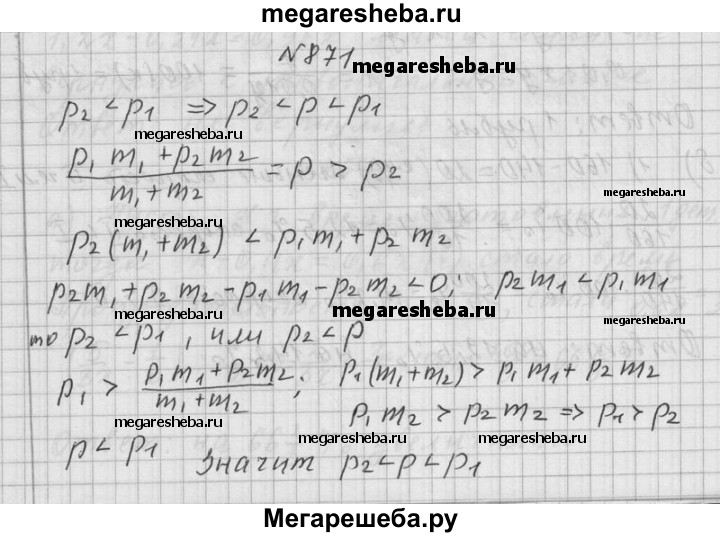 871. Доказываем. Докажите, что в предыдущей задаче из условия р2 < р1 следует, что р2 < р < р1.