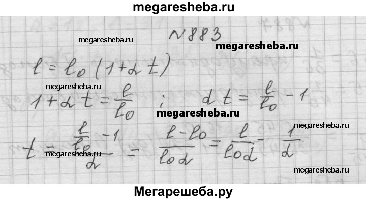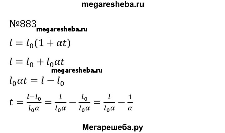 883. Зависимость между длиной I металлического стержня и его температурой t выражается формулой I = 10(1 + аt), где l0 — длина этого стержня при 0 °С, а — постоянная величина. Выразите t через I.