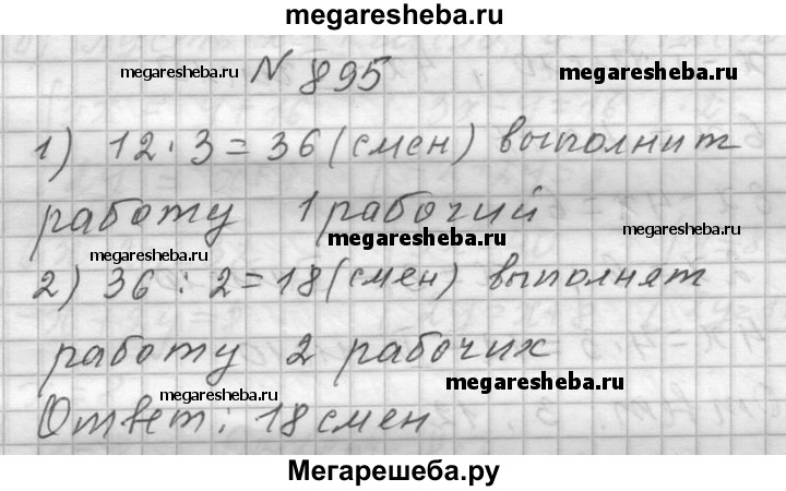 895. Трое рабочих выполняют некоторую работу за 12 смен. За сколько смен выполнят эту же работу двое рабочих, если производительность труда всех рабочих одинакова?