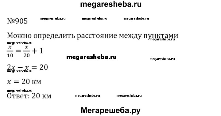 905. Из одного населённого пункта выехал велосипедист со скоростью 10 км/ч. Спустя 1 ч вслед за ним выехал второй велосипедист со скоростью 20 км/ч. В пункт назначения оба велосипедиста прибыли одновременно. Что можно определить, используя данные условия?