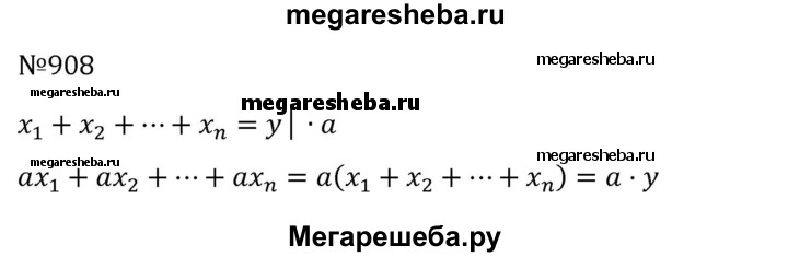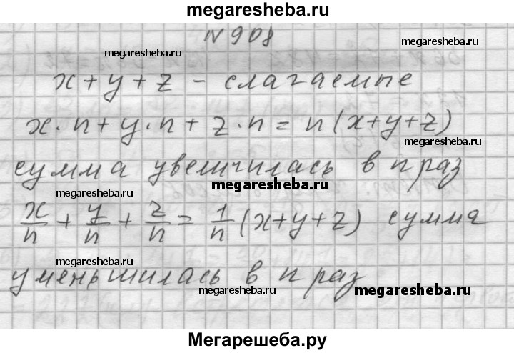 908. Доказываем. Докажите, что если все слагаемые суммы увеличить или уменьшить в одно и то же число раз, то сумма соответственно увеличится или уменьшится во столько же раз.