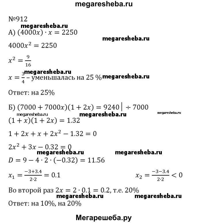Подробный решебник (ГДЗ) по Алгебре за 8 (восьмой) класс - готовый ответ номер - 912. Авторы учебника: Никольский, Потапов, Решетников, Шевкин. Издательство: Просвещение 2015-2022.