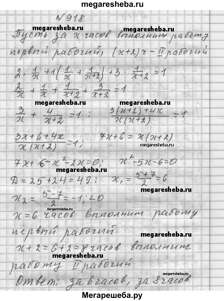 Подробный решебник (ГДЗ) по Алгебре за 8 (восьмой) класс - готовый ответ номер - 918. Авторы учебника: Никольский, Потапов, Решетников, Шевкин. Издательство: Просвещение 2015-2022.