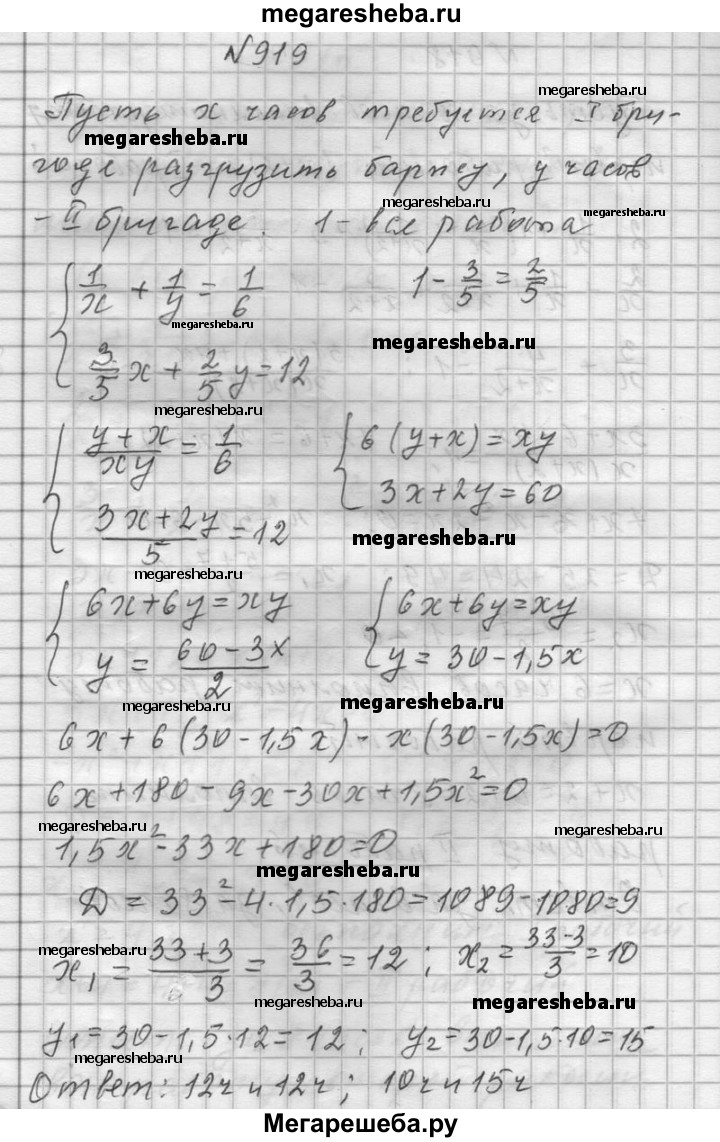 Подробный решебник (ГДЗ) по Алгебре за 8 (восьмой) класс - готовый ответ номер - 919. Авторы учебника: Никольский, Потапов, Решетников, Шевкин. Издательство: Просвещение 2015-2022.