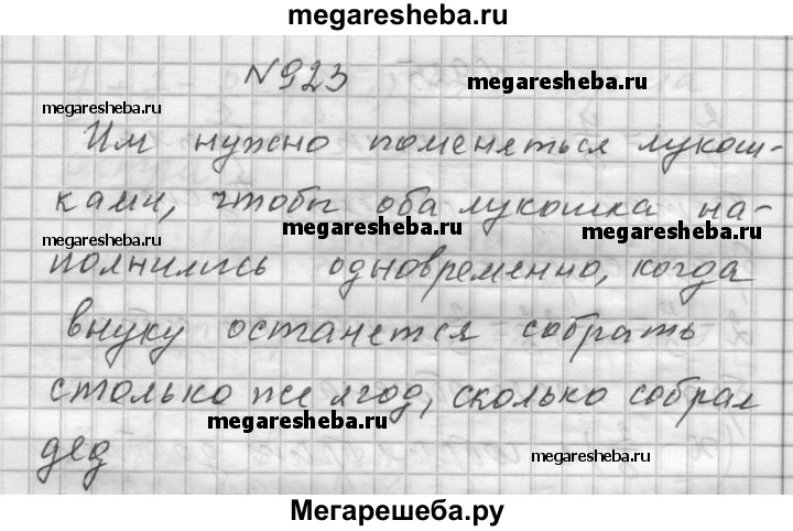 923. Дед и внук начали одновременно собирать клюкву в одинаковые лукошки. Дед собирает быстрее внука. Когда им надо поменяться лукошками, чтобы оба лукошка наполнились одновременно?