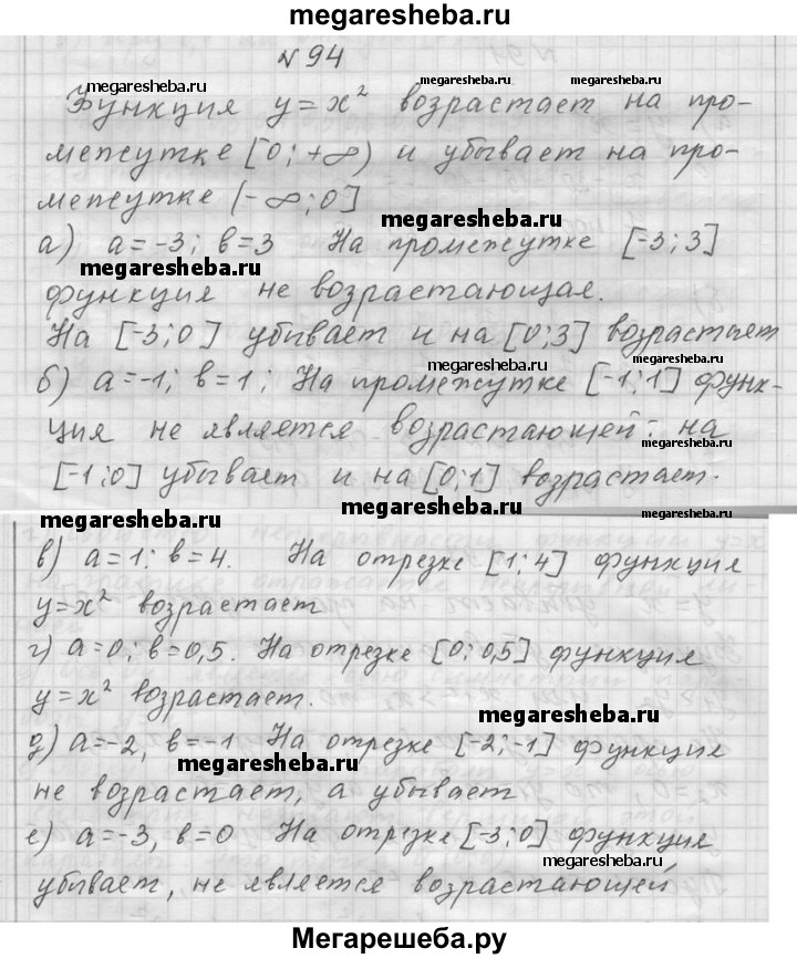 94. Является ли функция у = х2 возрастающей на отрезке [а; b], если: